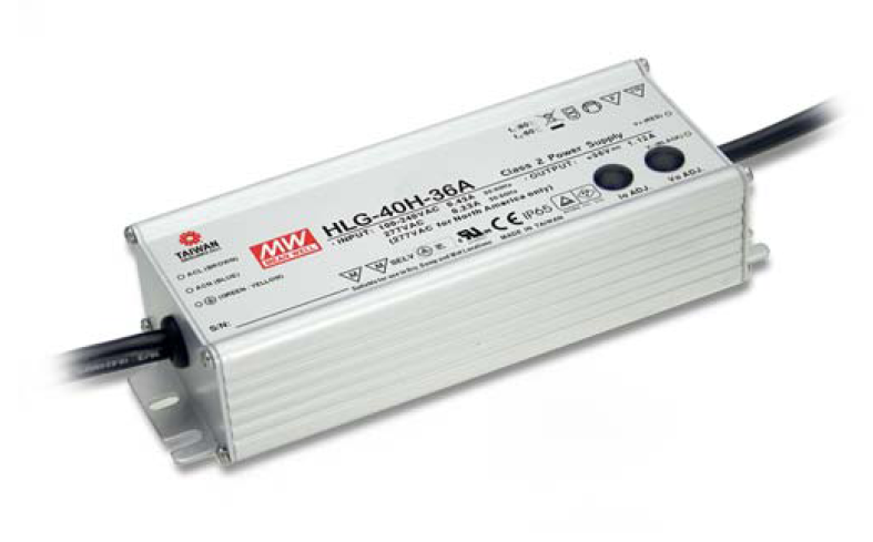 Zasilacz Mean Well stałonapięciowy z funkcją stałoprądową HLG-40H-12A, Uwy: 12V, Iwy: 0-3.33A, moc 40W, PFC, IP67, 7 lat gwarancji, RoHS