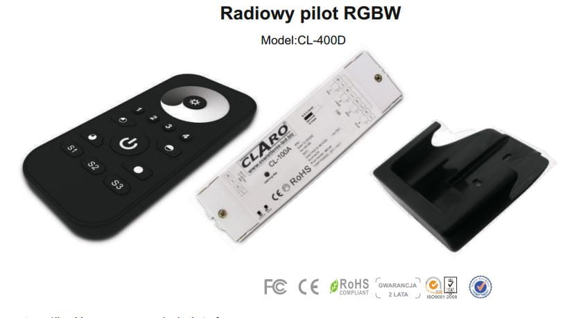 WIELOSTREFOWY PILOT ŚCIEMNIACZ LED RGB RADIOWY CL-400-D