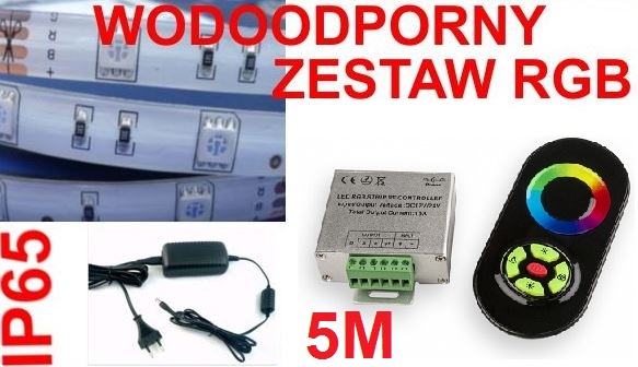 ZESTAW RGB 5 METRÓW WODOODPORNY DOTYKOWY RADIOWY PILOT CZARNY lub BIAŁY